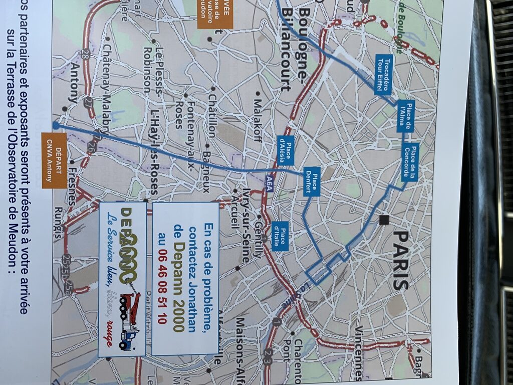 Am Sonntag Morgen habe ich mich nach einer kurzen Nacht um 7:00 Uhr aufgemacht zur Registrierung am Startpunkt « Conservatoire National des Véhicules Anciens à Antony », wo ich mein Package ausgehändigt bekam und das Schild an meinem R16 befestigte. Es war in der Zeit ein konstanter Fluss an unterschiedlichsten Fahrzeugen die sich auf die vorgegebene Route durch Paris begaben und ich habe mich gegen 8:00 Uhr eingereiht.